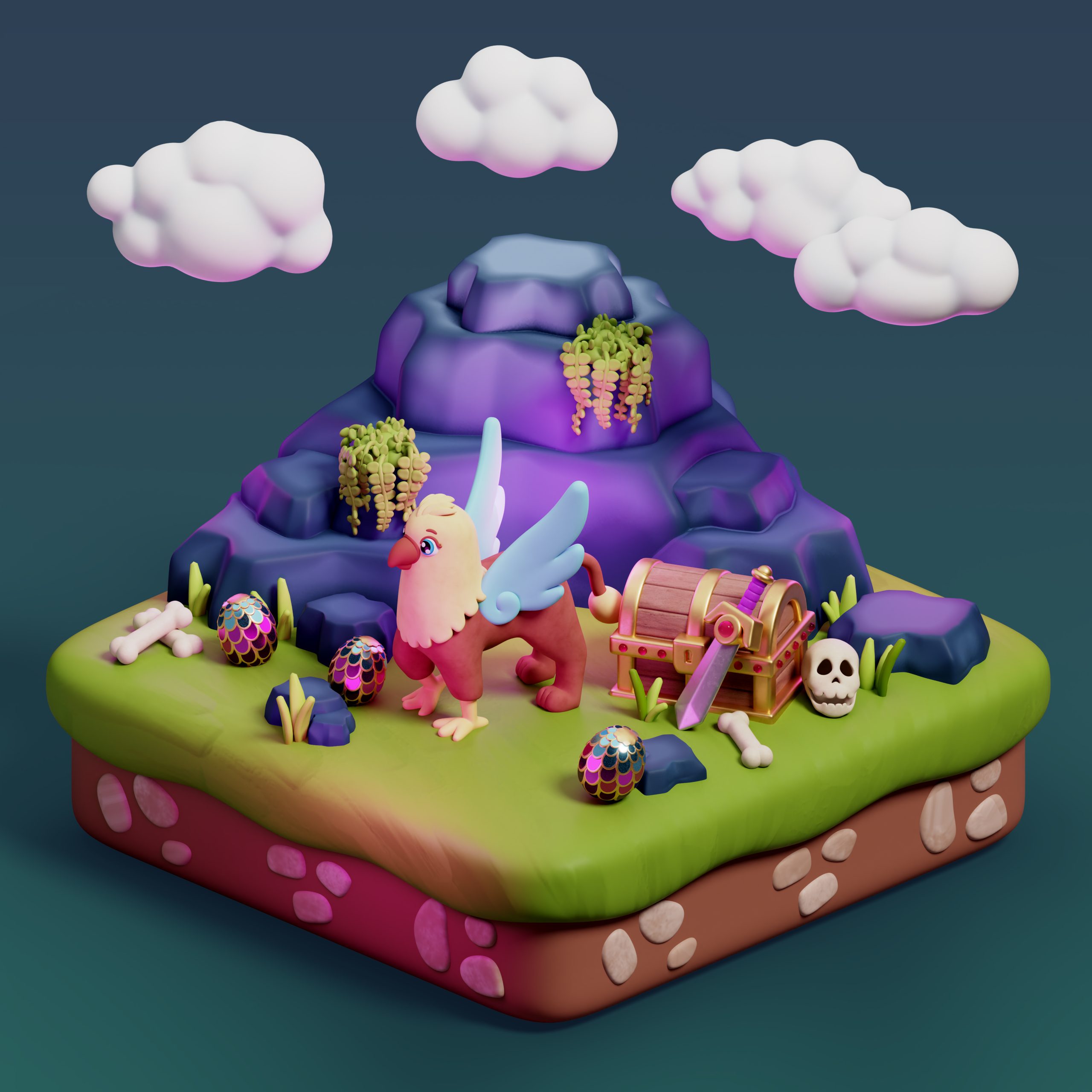 Escena 3D de un entorno en ruinas ambientado en un universo postfantástico. El objetivo era crear una imagen atmosférica que combinase arquitectura abandonada con elementos naturales para uso en cinemáticas y presentación de videojuego.